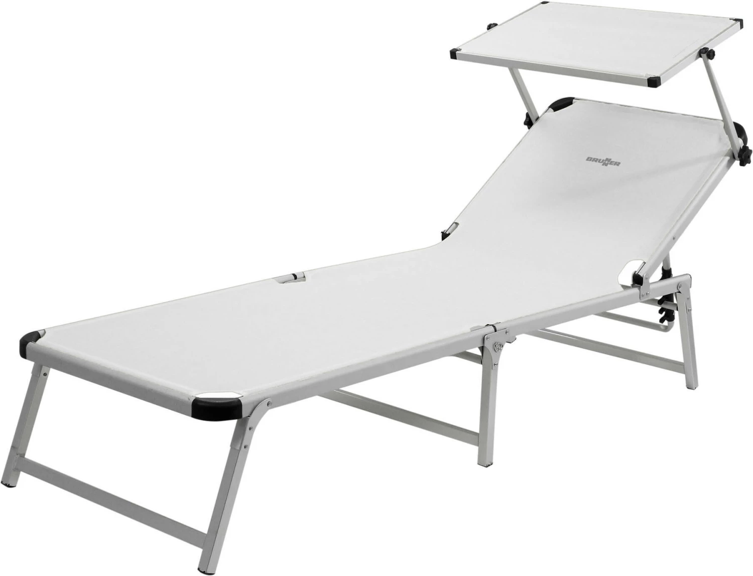 Hoogwaardige ligstoel met stabiel, inklapbaar driepootsframe van geanodiseerd aluminium. Met verstelbaar zonnescherm.