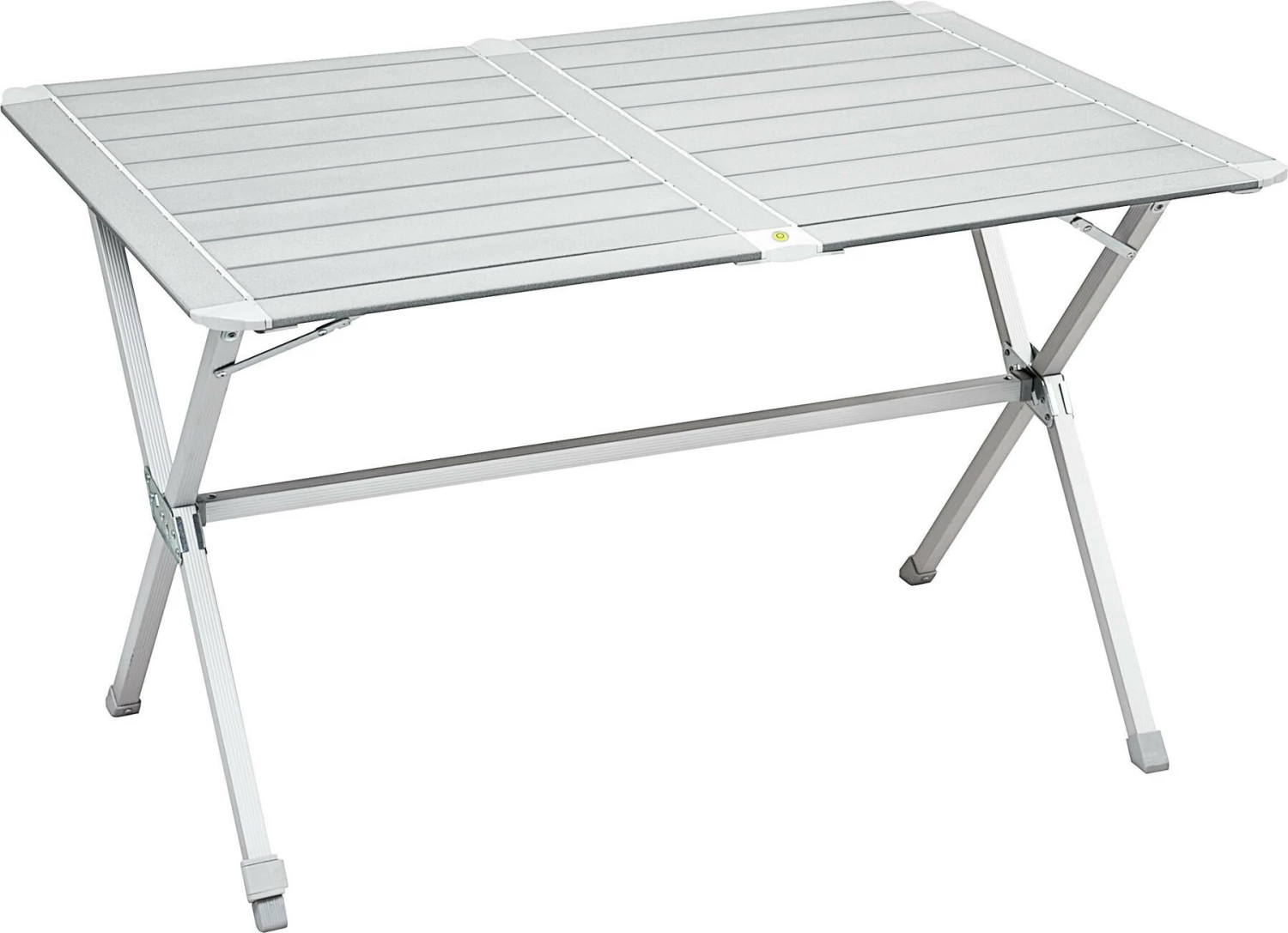 Aluminium klaptafel met oprolbaar tafelblad. Dankzij de geïntegreerde waterpas kan het tafelblad ook op oneffen oppervlakken absoluut horizontaal worden gepositioneerd (Level System). Stevig onderstel met verstelbare steunpoot. Bij de levering inbegrepen is een verpakkingstas voor een comfortabel transport.