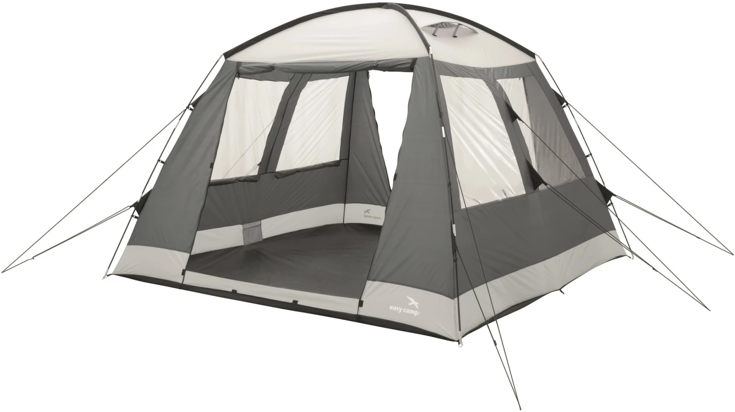 De mooie koepeltent Dayten heeft extra veel woonruimte, vier grote vensters met gordijnen aan de zijkanten, een ingenaaid grondzeil en een grote voor- en achteringang. Van de voor- of achteringang kan een luifel worden gemaakt en twee grote ventilatieopeningen in het dak zorgen voor een hele goede luchtcirculatie.