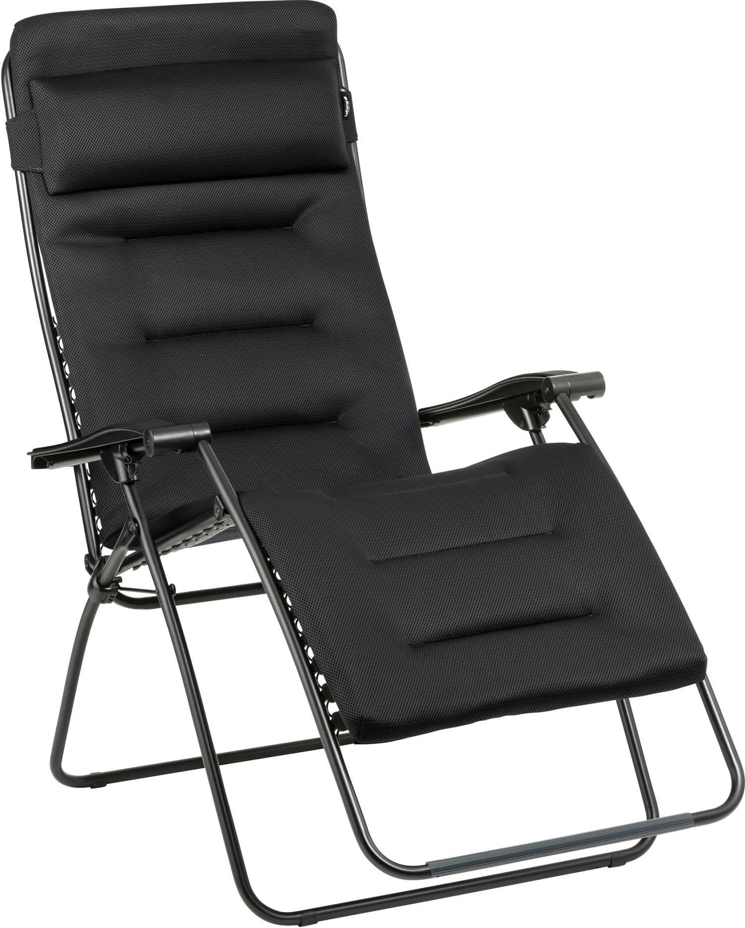 De RSXA Clip XL AC relaxfauteuil van Lafuma heeft een frame van gelakte stalen buizen met Ø 20 mm. De positie van de armleuningen in een korrelig reliëfpatroon van hars is traploos instelbaar en de positie wordt gefixeerd door een vergrendelrem. De afdekking is afneembaar, de ophanging en bevestiging van de afdekking gebeurt door het gepatenteerde klemsysteem. De stoel heeft ook een ergonomische, verstelbare en afneembare hoofdsteun, een voetsteunbeschermer en een vloerbeschermer.