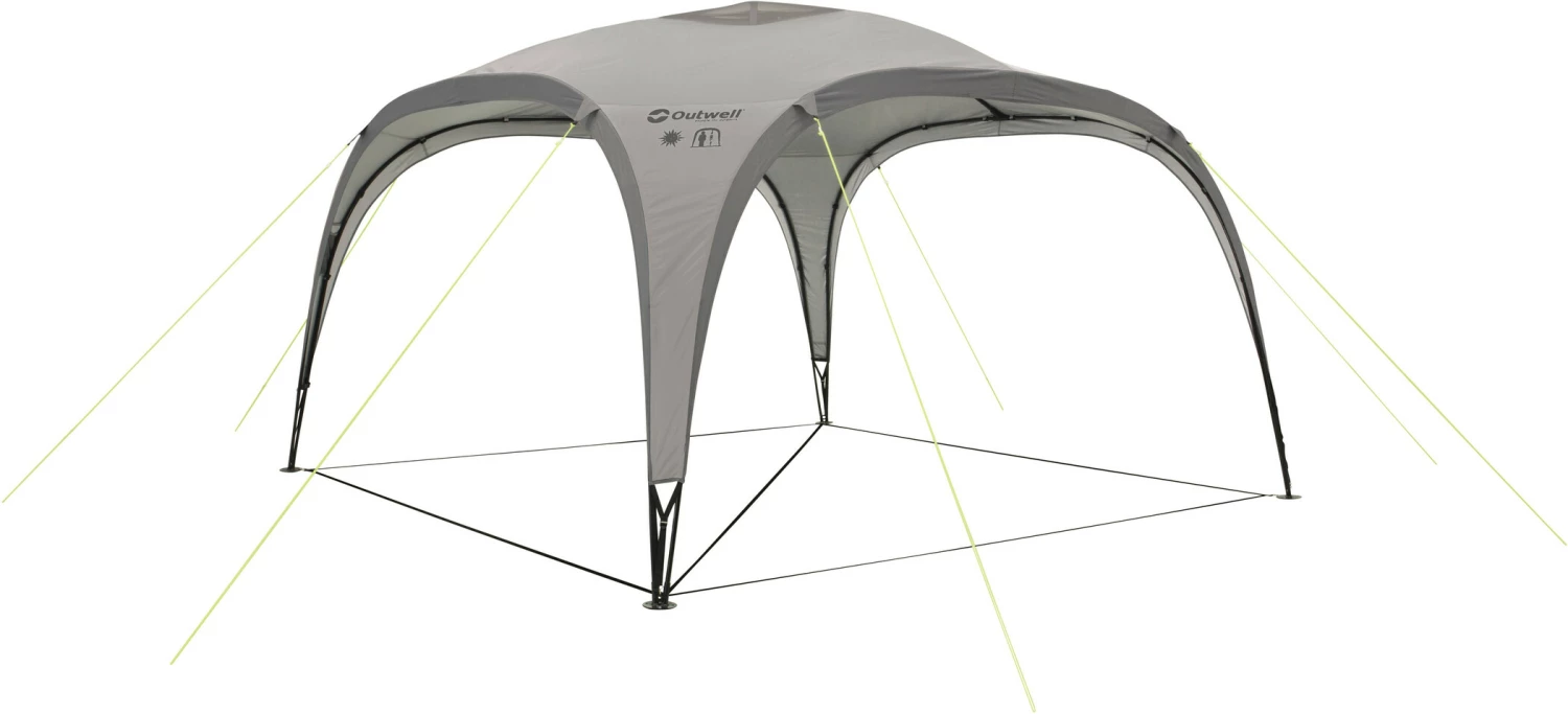 De Outwell Event Lounge L biedt een veelzijdige, vrijstaande schuilplaats. De uiterst robuuste en stabiele constructie wordt gekenmerkt door grote toegangspunten en een comfortabele stahoogte. Dankzij de ventilatieopening aan de bovenkant, het ophangpunt voor een lantaarn in het midden en twee gaaszakken biedt de Lounge maximale praktische flexibiliteit. Het polyester is voorzien van een zilver- en PU-coating zodat het bestand is tegen een waterkolom van 1500 mm. Om een groter beschermd recreatiegebied te creëren, kunnen onderling verenigbare schuilplaatsen via een regengoot met elkaar worden verbonden.